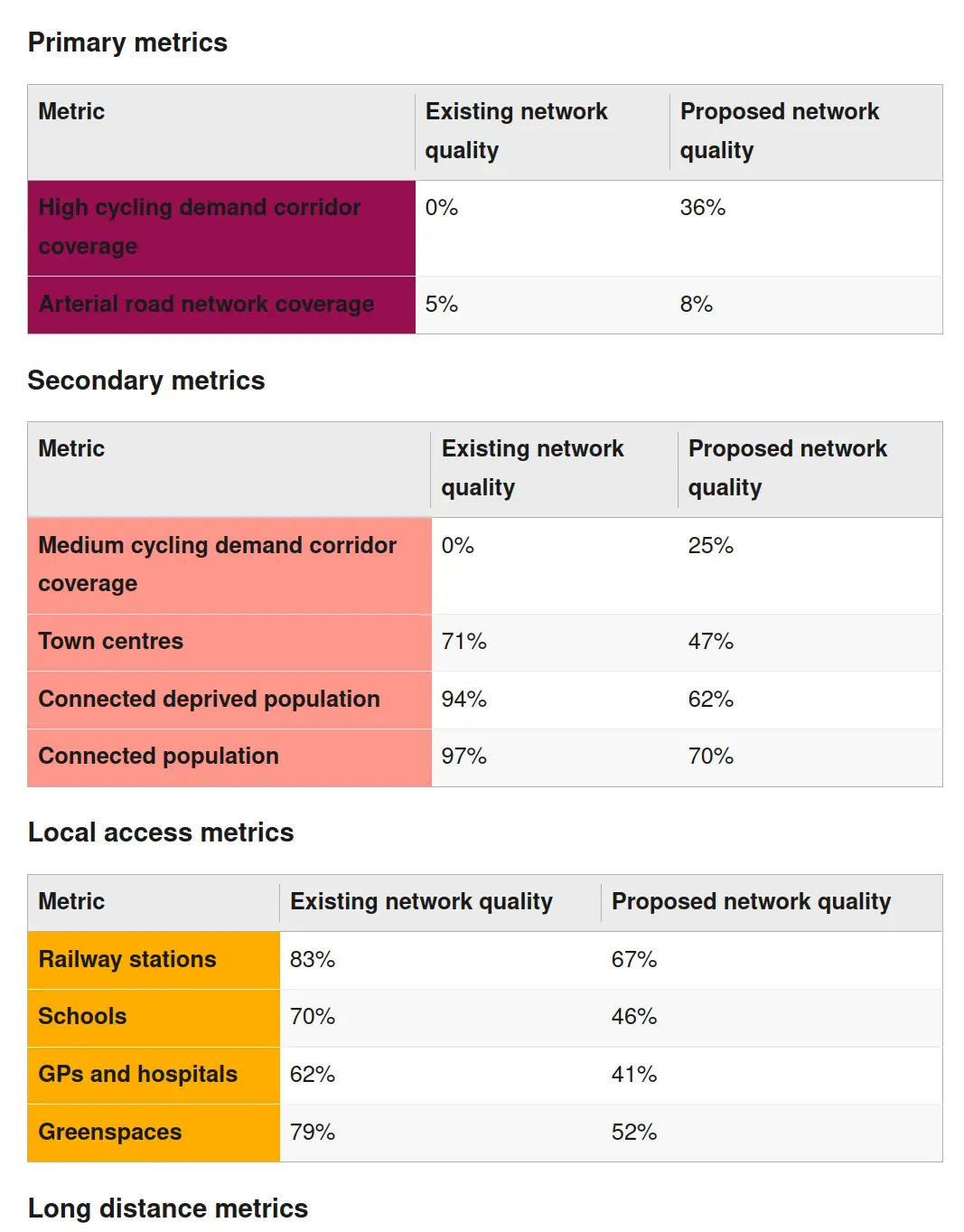The Network Planning Workspace (NPW) is a web app for local authorities to plan a cycle network. Users draw routes on the map to form the network, starting from primary and secondary tiers that cover potential demand, and then filling in local access connections and long-distance routes between settlements. By looking at data on speed limit, traffic volume, and available street width, NPW automatically picks an appropriate infrastructure type for each section of a route. Users can address any constraints where a high Level of Service cannot be achieved or where a street is too narrow to fit a segregated cycletrack. As the network is built up, NPW displays a variety of metrics to judge the performance of the network.